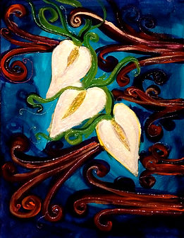 I chose a piece called "Puff" by artist Corey Sokolnicki. When we were at the CAW meeting we had a chance to walk around the gallery and choose a piece that would inspire our "that". I looked around and saw a red crab-like creature that looked awesome. I love things like Crabs and Trees...since my maiden name is Crabtree. But alas, that one was taken. But it was meant to be because I definitely have a thing for dragons. Fire breathing dragons, red dragons, evil dragons, and magical dragons. They are all awesome. So, I spied this painting hanging high up on the wall, out of my reach. "Puff". I love the colors...I dig working with greens, purples, reds and oranges. And, whether Corey meant it or not, I spy a calla lily on the top left. My plan is to use the same color pallet and include puffs of "smoke" and random lilies in the piece. We shall see how it goes. I really love these sorts of collaborations, so I am excited to get started on my "that".